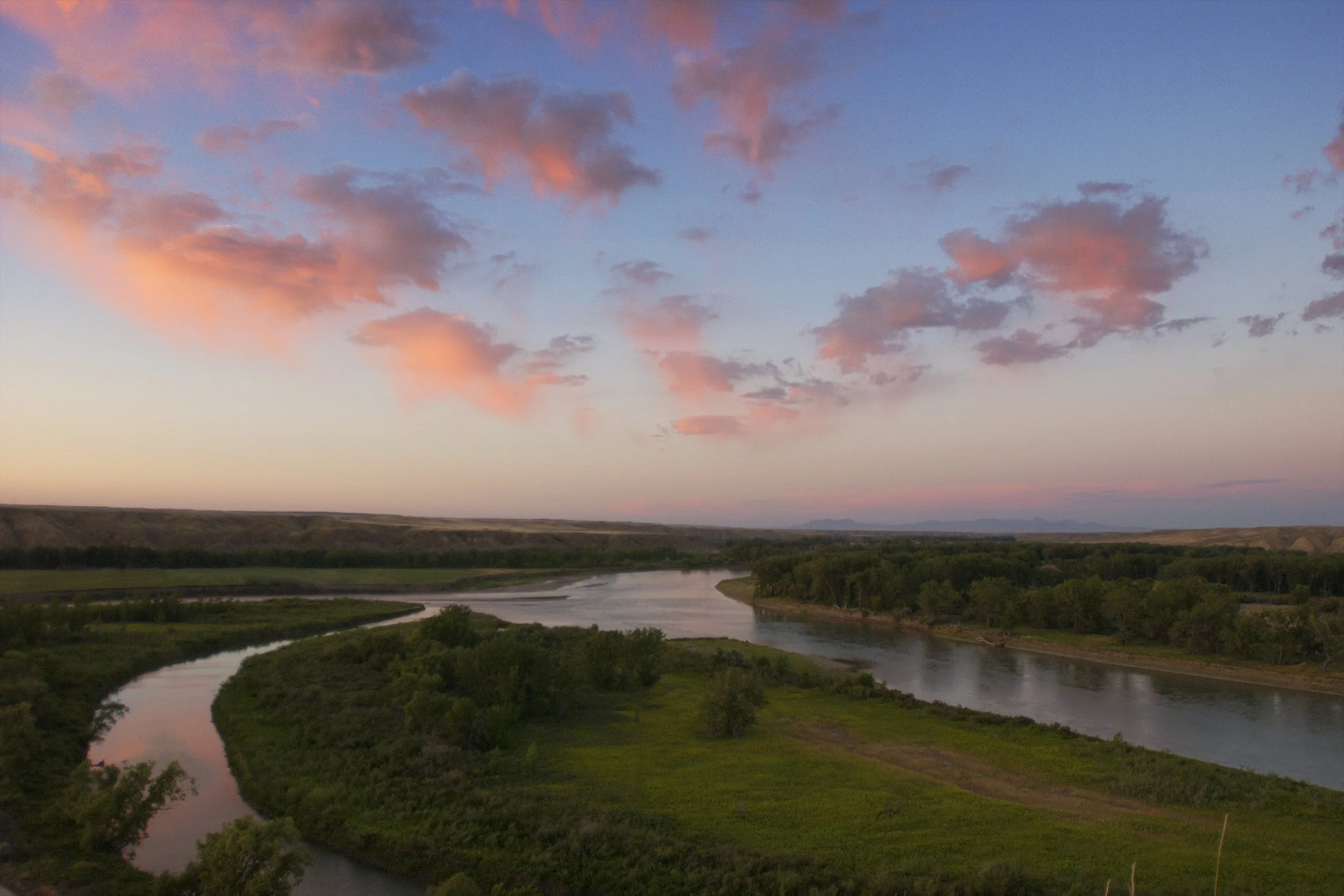 CONFLUENCE OF MARIA & MISSOURI RIVERS - Near Loma, Montana - This area along the Lewis and Clark trail is referred to as ‘Decision Point’. The Corp of Discovery camped for ten days while deciding which river would lead them to the northwest passage. After Captain Lewis walked seventy miles up the Marias River, all 39 men agreed to follow his decision to navigate the clearer water of the Missouri River which he reasoned was coming from the mountains. Days later they ran into the seven waterfalls at Great Falls, Montana. It took a full month to maneuver around the falls.